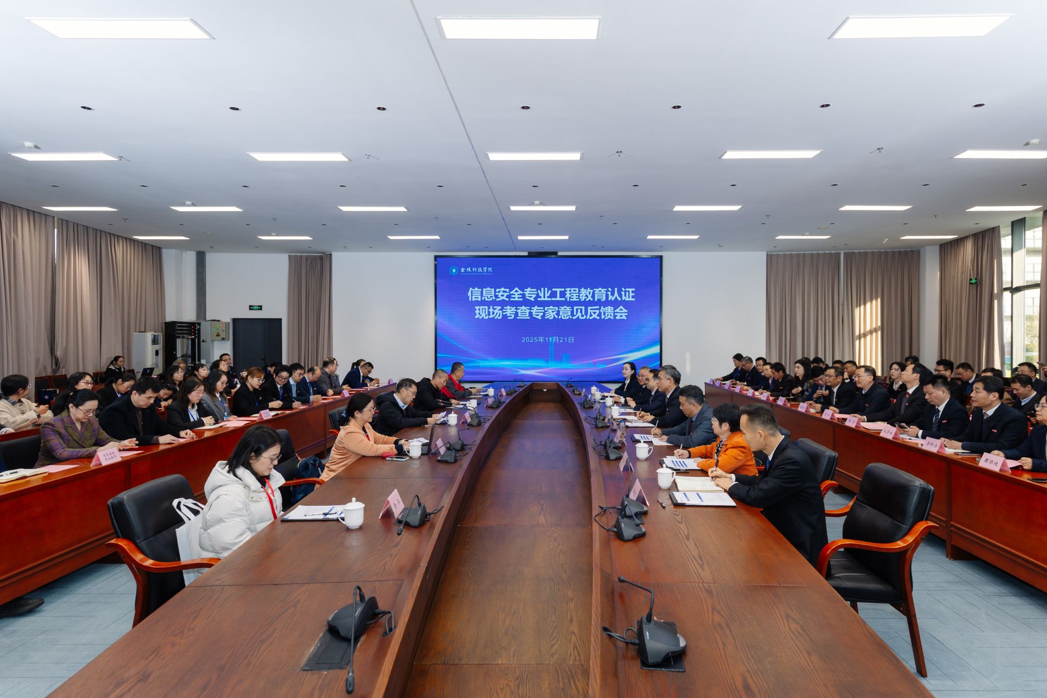 刘志远代表学校作表态讲话,他对专家组不辞辛劳和细致入微的指导表达了衷心感谢。同时,对于专家组提出的各项诊断意见及改进建议,他表示将全盘接受、坚决落实整改。他指出,学校将以此次认证为契机,在巩固已有建设成效的基础上,不断改进不足之处,深化工程教育与产业需求的融合机制,增强人才培养对经济社会数字化转型和新一轮科技变革的适应性,加快构建符合工程教育专业认证理念的人才培养体系和持续改进机制,切实推动人才培养质量迈上新台阶。他强调,要系统总结信息安全专业认证工作的经验与不足,以工程教育认证标准为导向,全面深化专业综合改革与内涵建设,加快其他工科专业认证步伐,形成“以点带面、整体跃升”的辐射效应,持续提升学校整体办学水平和人才培养质效。