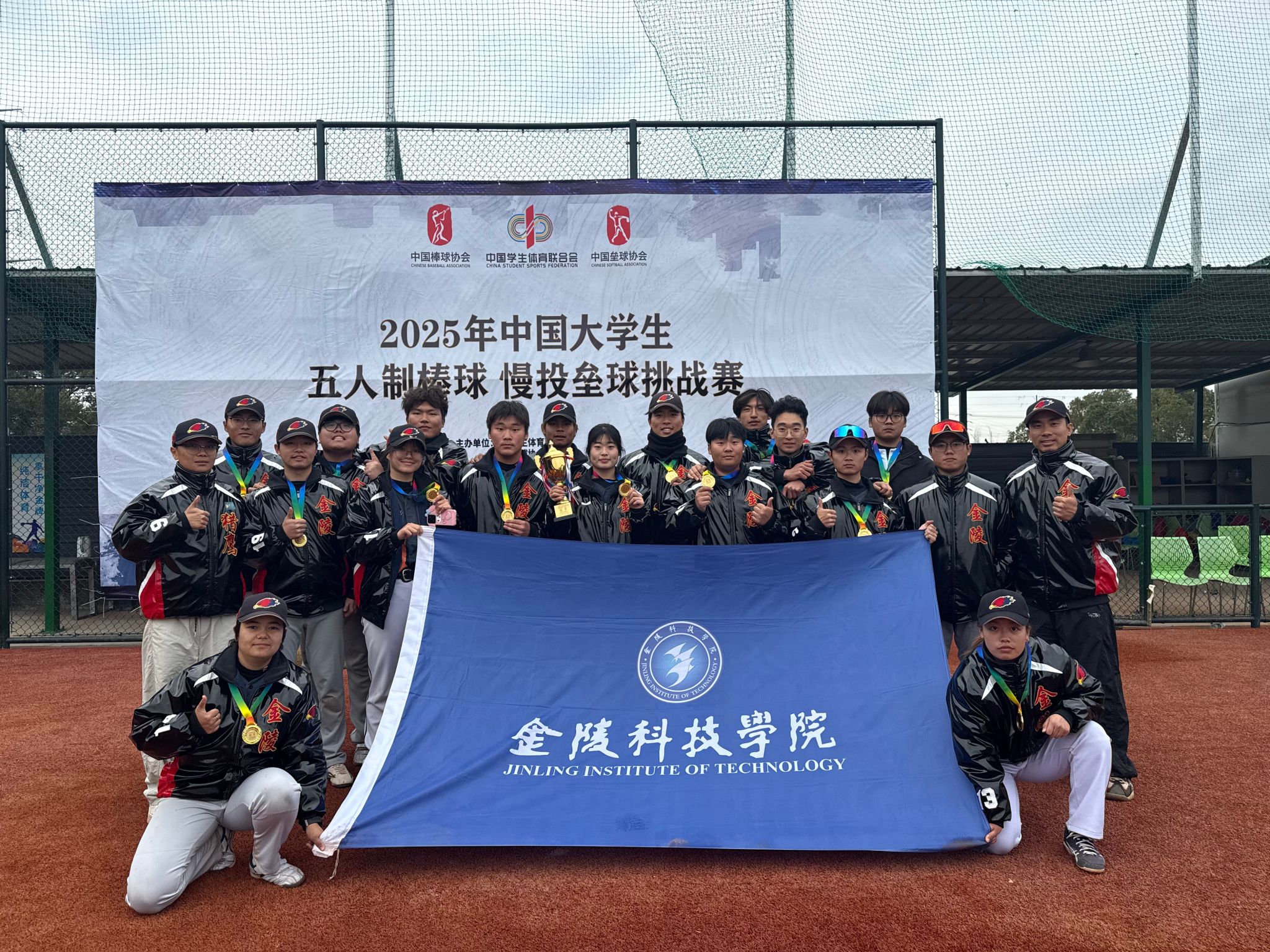 12月21日,由中国学生体育联合会主办,南京工业大学体育学院协办的2025年中国大学生五人制棒球、慢投垒球挑战赛慢投垒球项目赛事圆满落幕,本次赛事汇聚了全国多所高校的顶尖队伍同台竞技。我校棒垒球队以4胜1平的战绩勇夺慢投垒球项目甲组冠军,完成了大学生慢投垒球项目大满贯。朱辰老师荣获赛事“优秀教练员”称号,商学院的陈晨同学、网络安全学院的唐豪同学荣获“优秀运动员”称号。