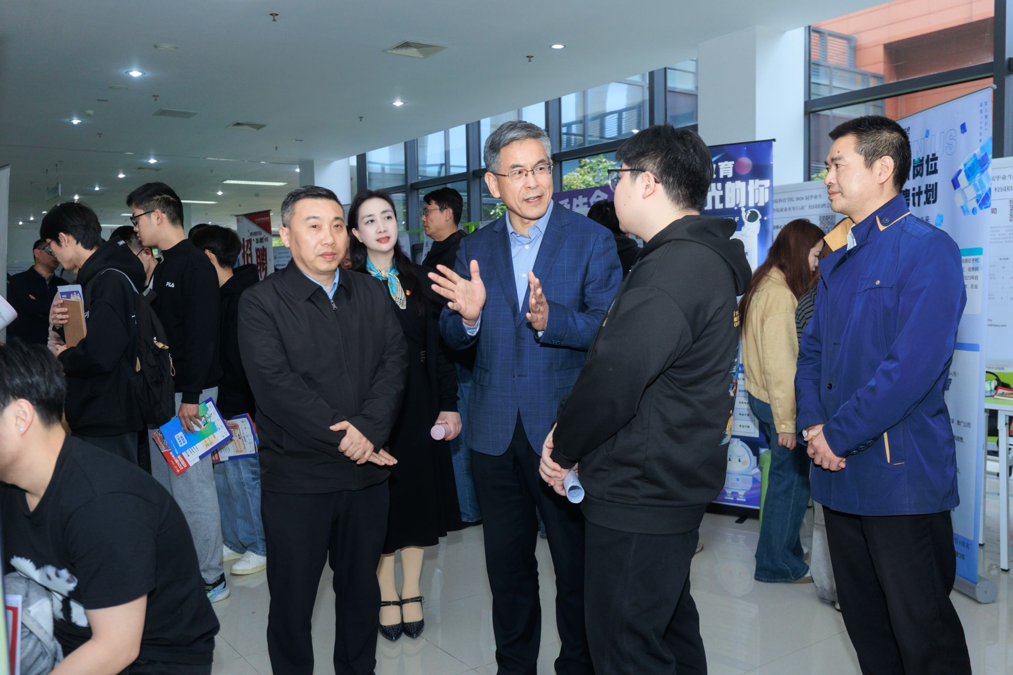 为抢抓春季就业关键窗口期,全力促进2026届毕业生高质量充分就业,4月8日下午,我校在江宁校区举办“春季促就业攻坚行动”大型校园招聘会。校党委书记刘志远、校长季赛、副校长顾晓燕深入招聘会现场,调研指导就业工作,并与用人单位及毕业生亲切交流。