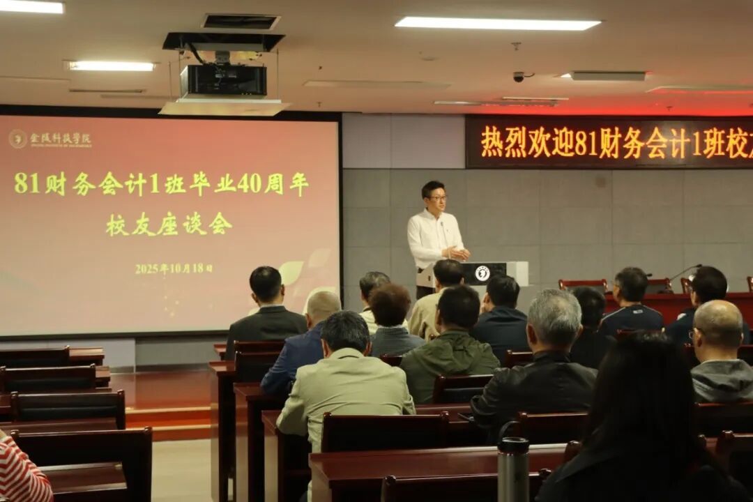 在校友郑蔚文的精心策划与组织下,10月18日,我校81级财务会计班校友毕业四十周年返校活动温情启幕。校党委原副书记裴青洲(原金陵职业大学81级财务会计班班主任),商学院党委书记徐立岗、院长刘磊以及相关校友、师生代表齐聚一堂。一场跨越了四十年的温暖相聚,在金科校园里奏响了一曲动人的情谊之歌。