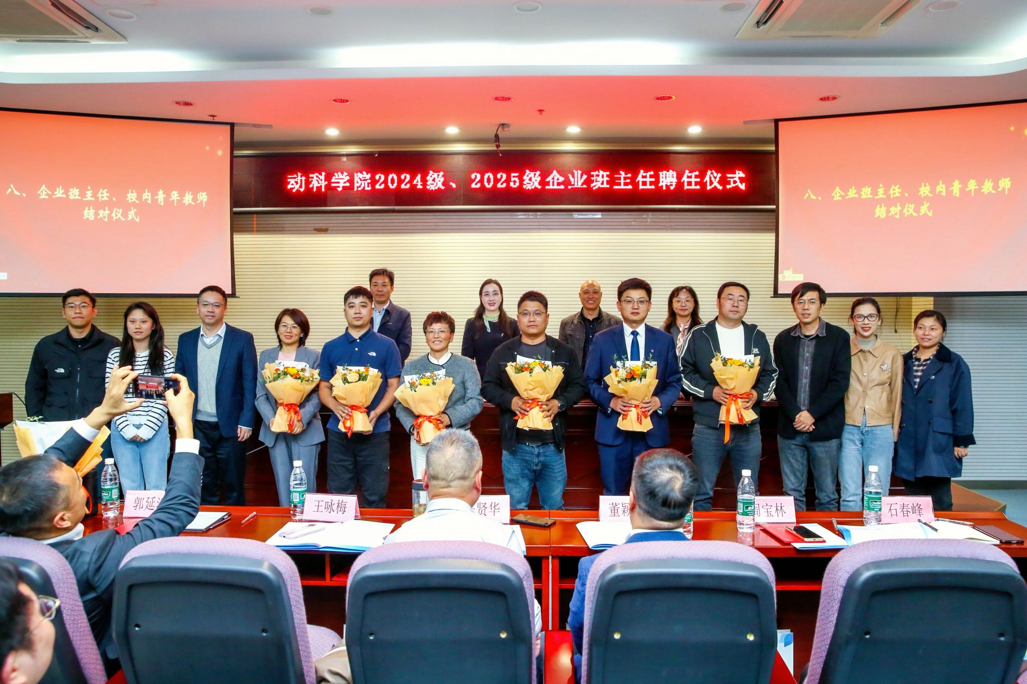 仪式现场,动物科学与食品工程学院党委书记王正昱致欢迎辞,对各企业长期支持学院实践育人与人才培养工作表达诚挚感谢。学院副院长蒋加进围绕学院发展历史、专业师资力量、办学成果等方面介绍学院概况。学院党委副书记黄淑婧回顾了过去九年企业班主任工作的开展历程与成效。学院副院长罗羽洧宣读了《动物科学与食品工程学院关于聘任 2024 级、2025 级企业班主任的决定》。